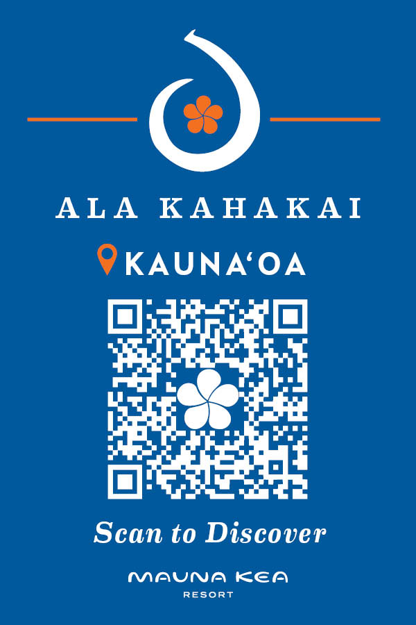 Along the trail, marked points of interest invite you to scan QR codes to access stories about the culture, nature, and history of the Kohala Coast through the Mauna Kea Beach Hotel mobile app, with optional audio narration and additional information at select stops.
