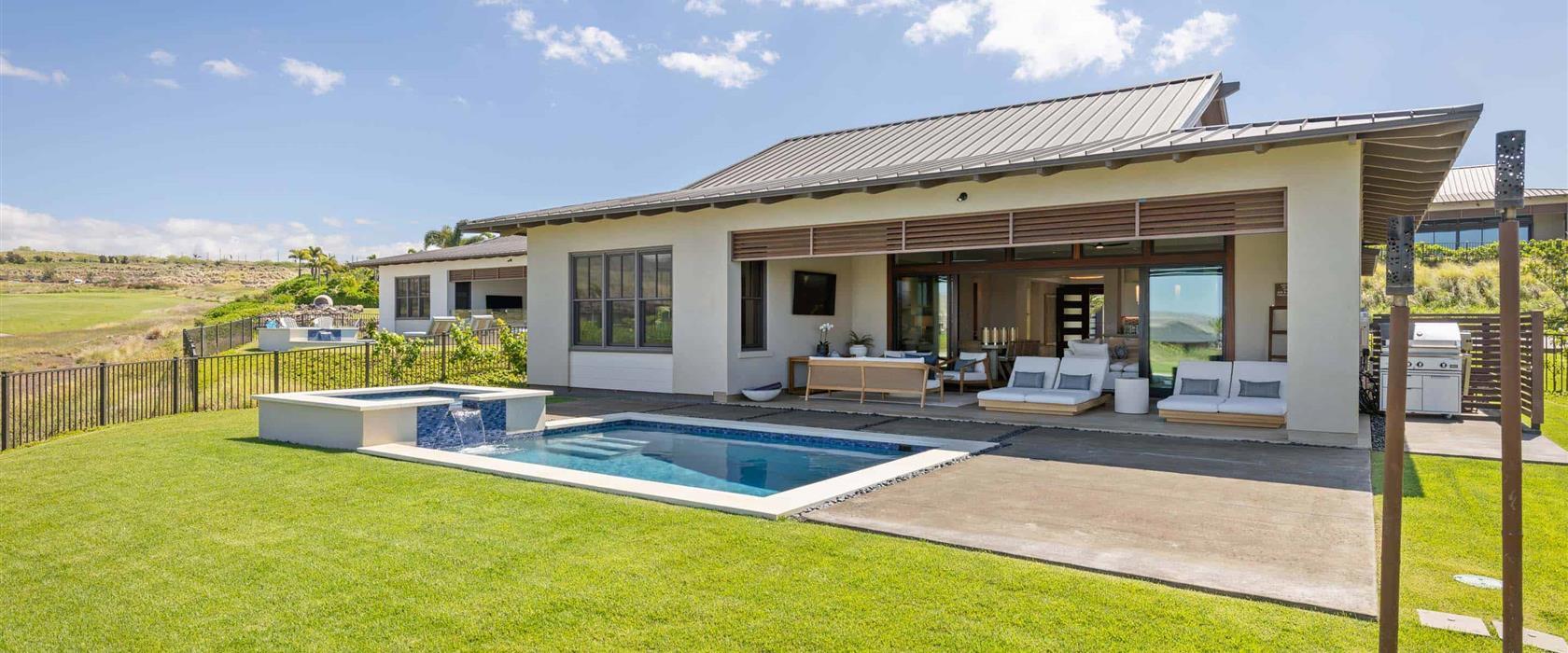 Nestled within the exclusive enclave of Mauna Kea Resort, Amaui Villa 9 embodies Hawaiian luxury with breathtaking ocean views and thoughtfully designed spaces. The epicurean kitchen, adorned with premium appliances and natural stone countertops, seamlessly flows into the dining and living areas, creating an inviting space for entertaining. The indoor-outdoor living area features a grand dining table that seats ten, a spacious sectional for relaxation, and a luxurious lanai with an outdoor TV—perfect for watching sports—alongside ample seating and a built-in BBQ. This exquisite residence boasts four guest suites: three in the main house, including a lavish primary suite with a king-size bed, an ensuite bathroom with a standalone tub, a separate walk-in shower, and access to a private outdoor shower; a secondary suite with a king-size bed and an ensuite bath with a spacious walk-in shower; and a third suite with two double beds and an ensuite shower. The fourth suite, located next to the garage, offers a private retreat with a king bed, a small kitchenette, and an ensuite bath. Additional amenities include a washer and dryer, a one-car garage, and an outdoor oasis featuring a private pool, a spill-over hot tub, and a well-appointed lanai with a gas BBQ, all set against the stunning backdrop of the Pacific Ocean. Guests of Amaui Villa 9 also enjoy exclusive access to The Park at Hapuna Estates, which boasts a 60-foot lap pool, waterslide, state-of-the-art fitness center, and luxurious daybed pods, ensuring an unparalleled resort experience.