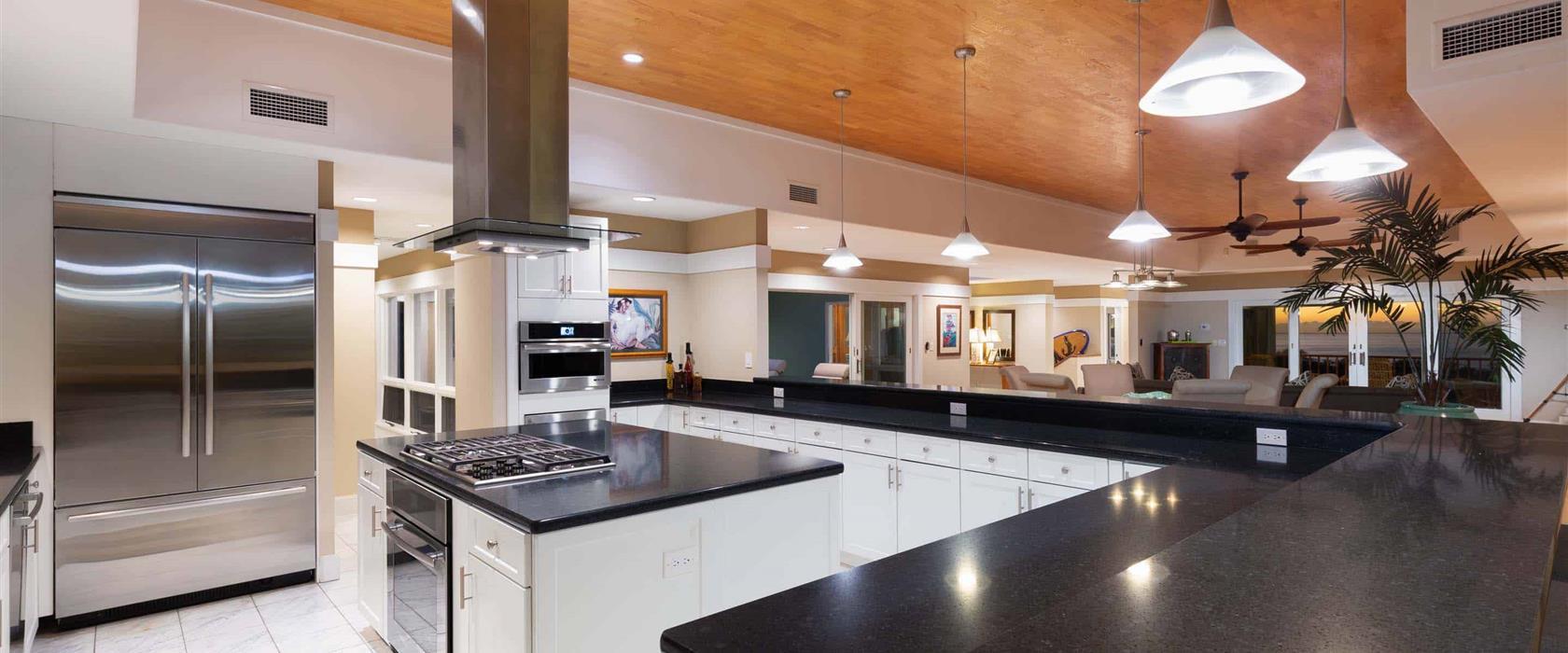 Located within the desirable North Fairways at the prestigious Mauna Kea Beach, this charming 4-bedroom residence will meet all of your Hawaii resort vacation wants. This beautiful vacation rental not only offers breathtaking panoramic ocean views it also provides views of Maui and the Kohala mountains. Step into the stunning open plan living space featuring a spacious kitchen featuring stainless steel appliances perfect for hosting large gatherings or private chefs. In addition to the kitchen the residence offers multiple areas to eat such as the the four bar seats inside, dining table for six or step out to deck for an alfresco get together featuring a long dining table for eight (8.) The kitchen also opens up to two separate living spaces; a more formal conversational living area as well as a separate cozy tv room. Enjoy reading in any of the six outdoor spaces including the inner courtyard or play some games with family and friends by the outdoor ping pong table. Sleep well in one of the three guests suites that located within the main residences including the master which features a King bed, stunning views of the ocean and a dream ensuite which includes a spacious indoor walk in shower or a unique stand alone outdoor tub. The secondary suite includes a queen bed and ensuite bathroom featuring a jacuzzi tub while the third suite offer flexibility with it’s two twins that can be made into a king.