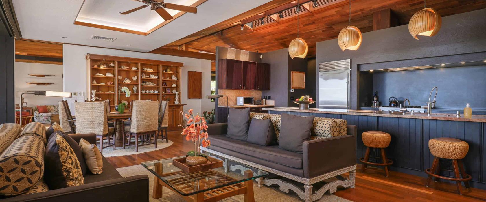 Guests will savor unobstructed, panoramic ocean vistas from the private pool, hot tub, covered lanai and pool deck appointed with an outdoor dining table for six, sumptuous lounge furniture, and a gas BBQ. Access to the unrivaled Mauna Kea Beach Hotel and Westin Hapuna Beach Resort amenities, including white sand beaches, world-class golf, oceanside tennis, swimming pools, dining, spa, shopping, activities, and resort charging privileges, is also included for Mauna Kea Residences guests.