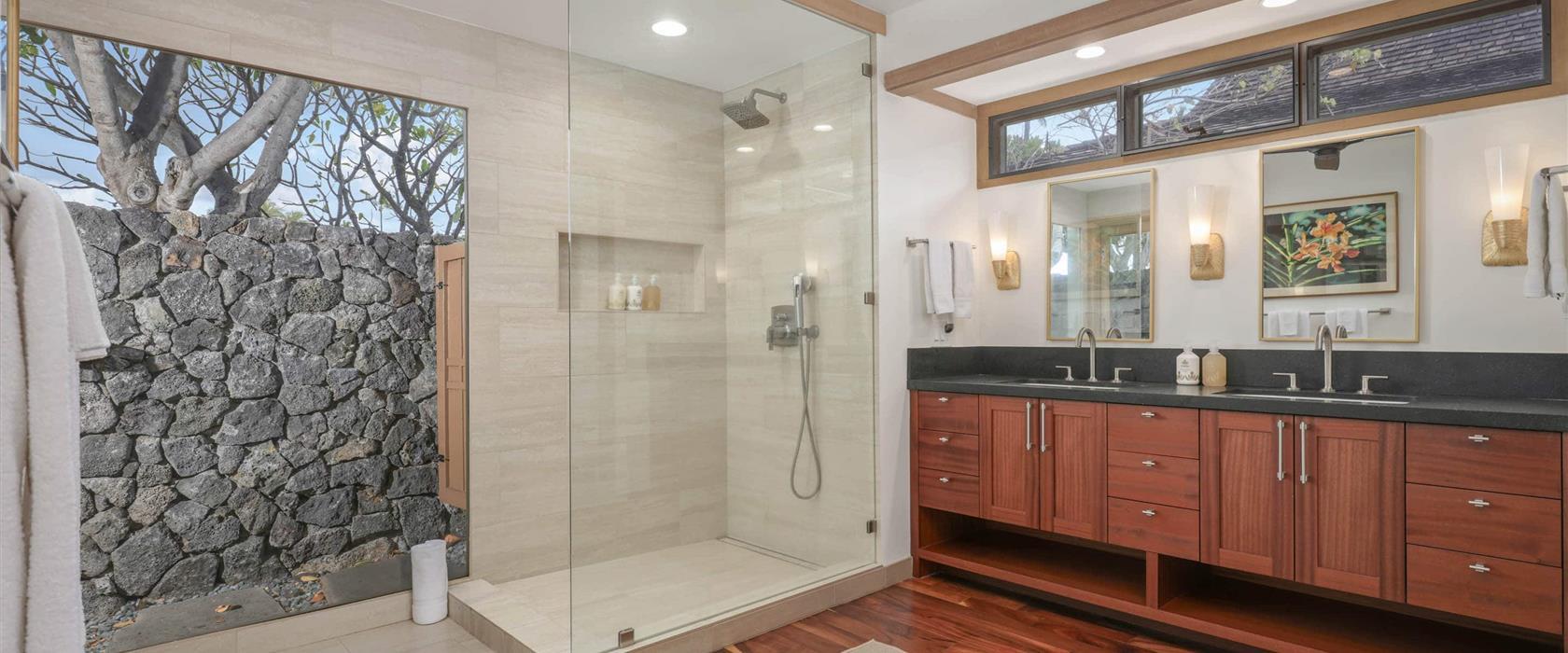 Located within the desirable South Fairways at the prestigious Mauna Kea Resort this charming 4-bedroom home adorned with exquisite Asia-Pacific decor. This beautiful vacation rental not only offers breathtaking ocean views but also provides a serene oasis to unwind and indulge in the island's tranquility. Step onto the spacious covered lanai, where you can bask in the warmth of the tropical sun or savor a delightful meal al fresco. The highlight of this luxurious retreat is undoubtedly the private pool and hot tub, offering a mesmerizing backdrop of the Pacific Ocean. Inside, the home boasts four comfortable bedrooms with ensuite bathrooms, three kings and one room with two twin over two queen bunk beds as well as gourmet kitchen, ensuring a relaxing and enjoyable stay. With air conditioning throughout, you'll find respite from the tropical heat while still being able to appreciate the island's natural beauty.