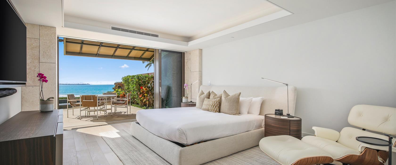 This island luxe, oceanfront, newly-constructed, ground level island masterpiece offers floor-to-ceiling sliding window walls that create indoor/outdoor living space, a fantastic chef’s kitchen outfitted with professional-grade Wolf, Sub-Zero and Miele appliances, wine storage and hand-crafted cabinetry. Additional features include two guest suites, each with a retreat-like, attached bath and sumptuous king size bed second wtih a queen, a third bedroom with garden views, Asko washer/dryer, air conditioning, sleeper sofa, a private plunge pool, and well-appointed lanai. This residence is steps from the Hapuna Golf Course Clubhouse.
