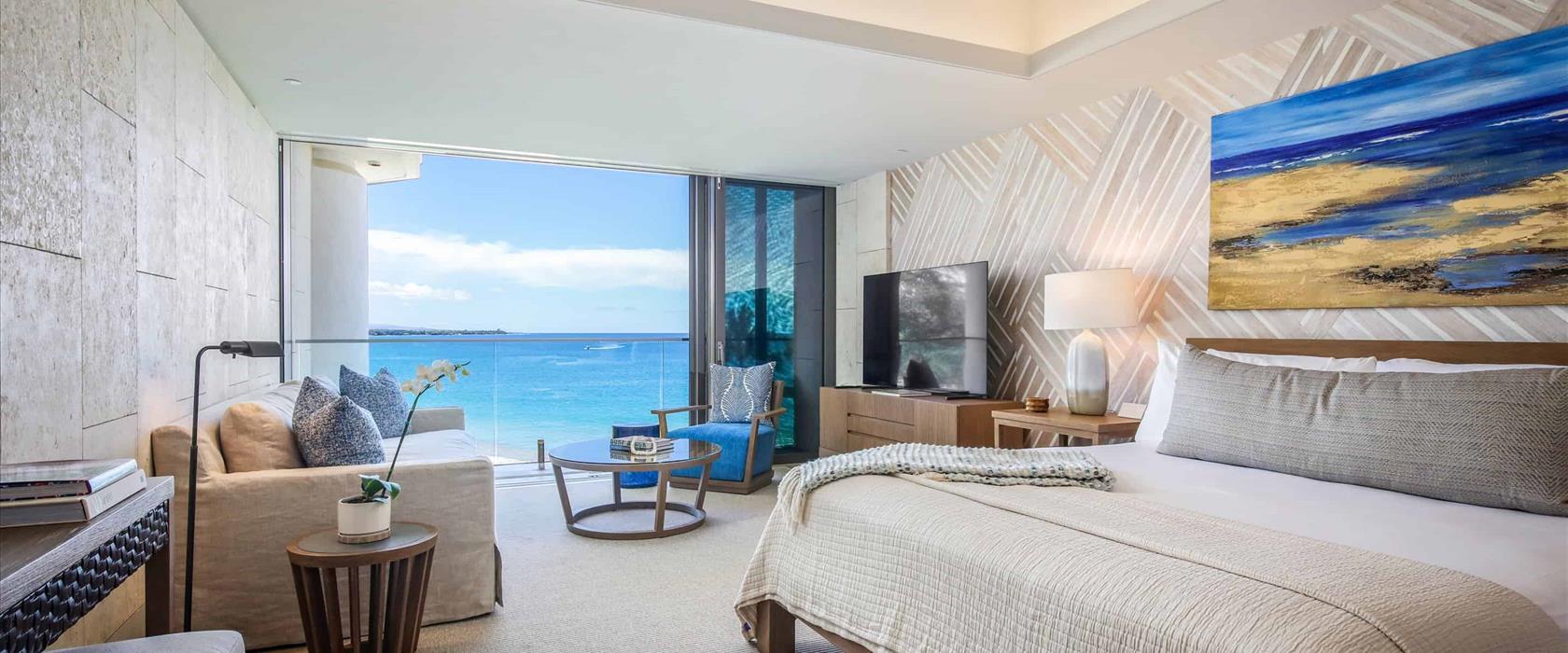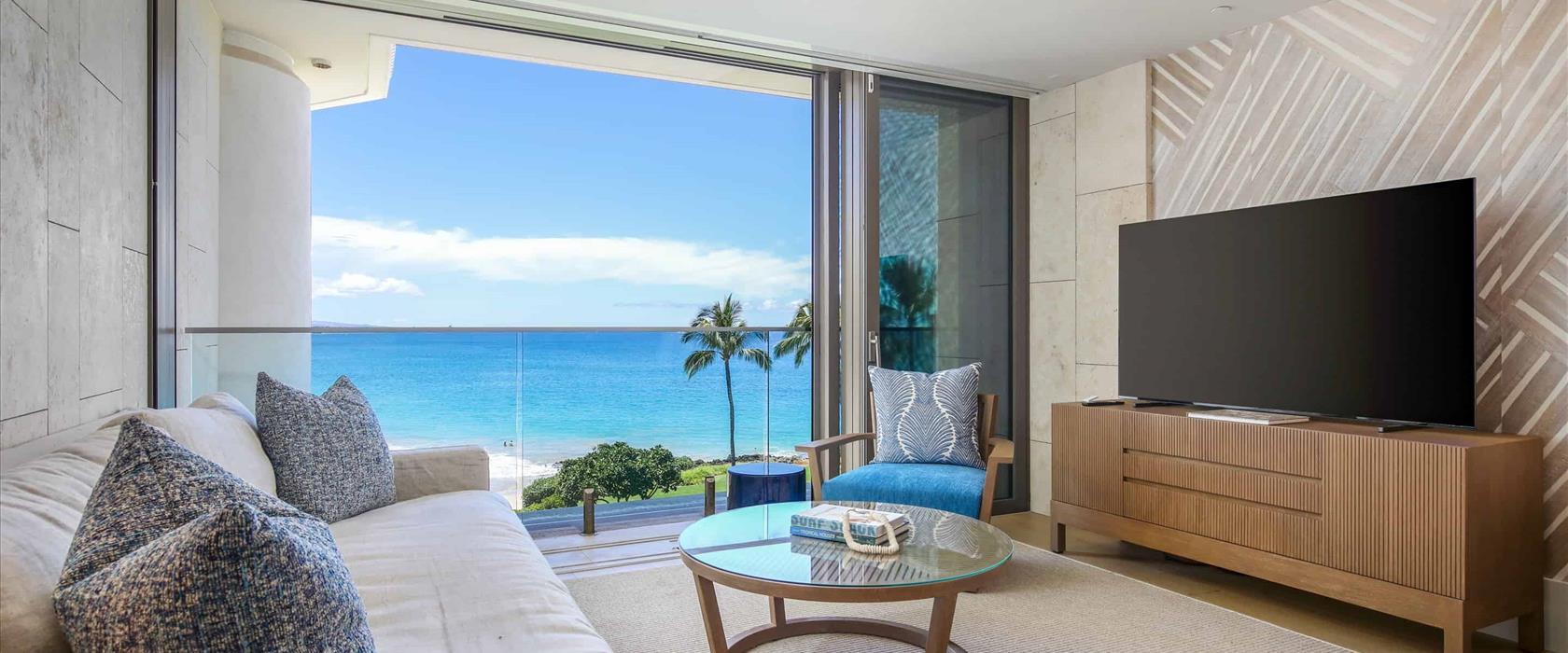 This delightful, oceanfront, newly-constructed, fourth level studio offers a floor-to-ceiling sliding window wall that creates indoor/outdoor living space, a chef’s kitchen outfitted with premium Wolf and Sub-Zero appliances, wine storage and hand-crafted cabinetry. Additional features include a luxuriant bathroom, king size bed, sleeper sofa, air conditioning, a laundry room and cozy lanai. This residence is steps from the Hapuna Golf Course Clubhouse.