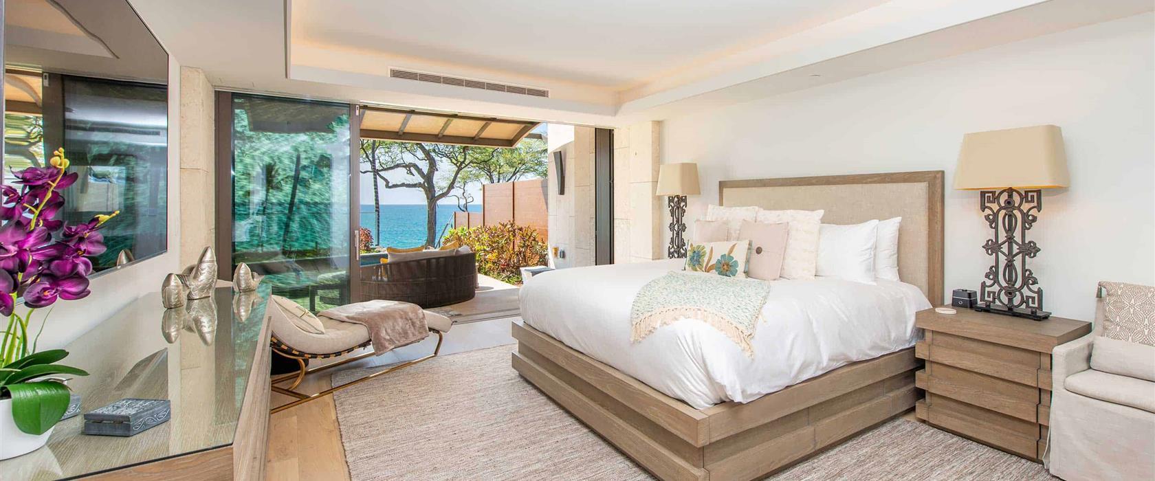This incomparable, oceanfront, newly-constructed island masterpiece seamlessly fuses the blissful convenience of ground-floor beach access with exceptional privacy and size. This residence showcases floor-to-ceiling sliding window walls that create an exquisite indoor/outdoor living space, a superb chef’s kitchen outfitted with professional-grade Wolf, Sub-Zero and Miele appliances, double ovens, wine storage and hand-crafted cabinetry, as well as dual living rooms, each with a king size sleeper sofa. Additional features include two guest suites, each with an Airloom® Breckenridge Streamline™ Lift™ mattress and attached, spa-like bathroom, air conditioning, a desk/workspace, laundry room with Asko washer/dryer, a private, heated plunge pool/Jacuzzi and an expansive 1,500+ sq/ft, furnished lanai. This residence is steps from the Hapuna Golf Course Clubhouse.