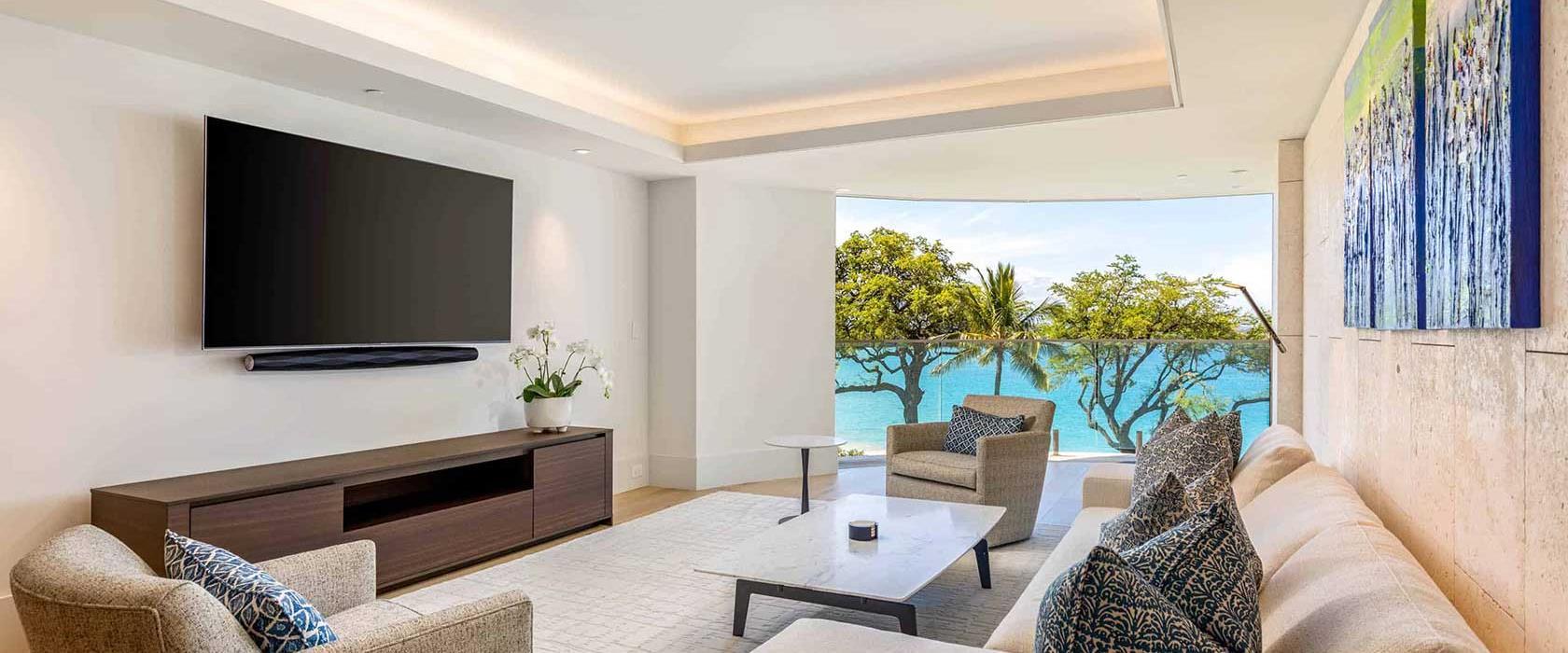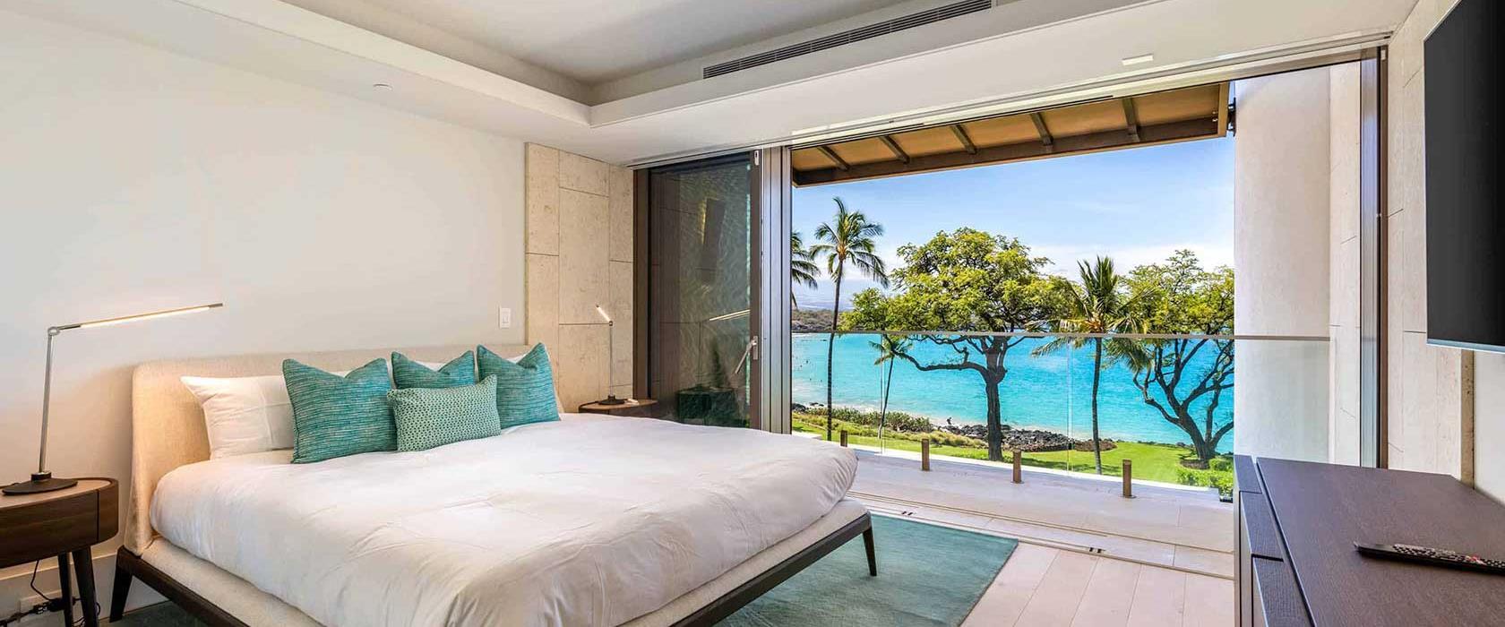This contemporary, oceanfront, newly-constructed, fourth level island masterpiece offers floor-to-ceiling sliding window walls that create indoor/outdoor living space, a chef’s kitchen outfitted with professional-grade Wolf, Sub-Zero and Miele appliances, wine storage and hand-crafted cabinetry. Additional features include one suite with a retreat-like, attached bath and sumptuous king size bed, a second guest bedroom, an Asko washer/dryer, air conditioning and furnished lanai. This residence is steps from the Hapuna Golf Course Clubhouse.