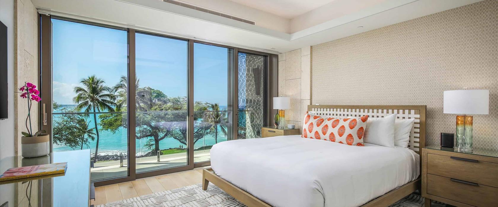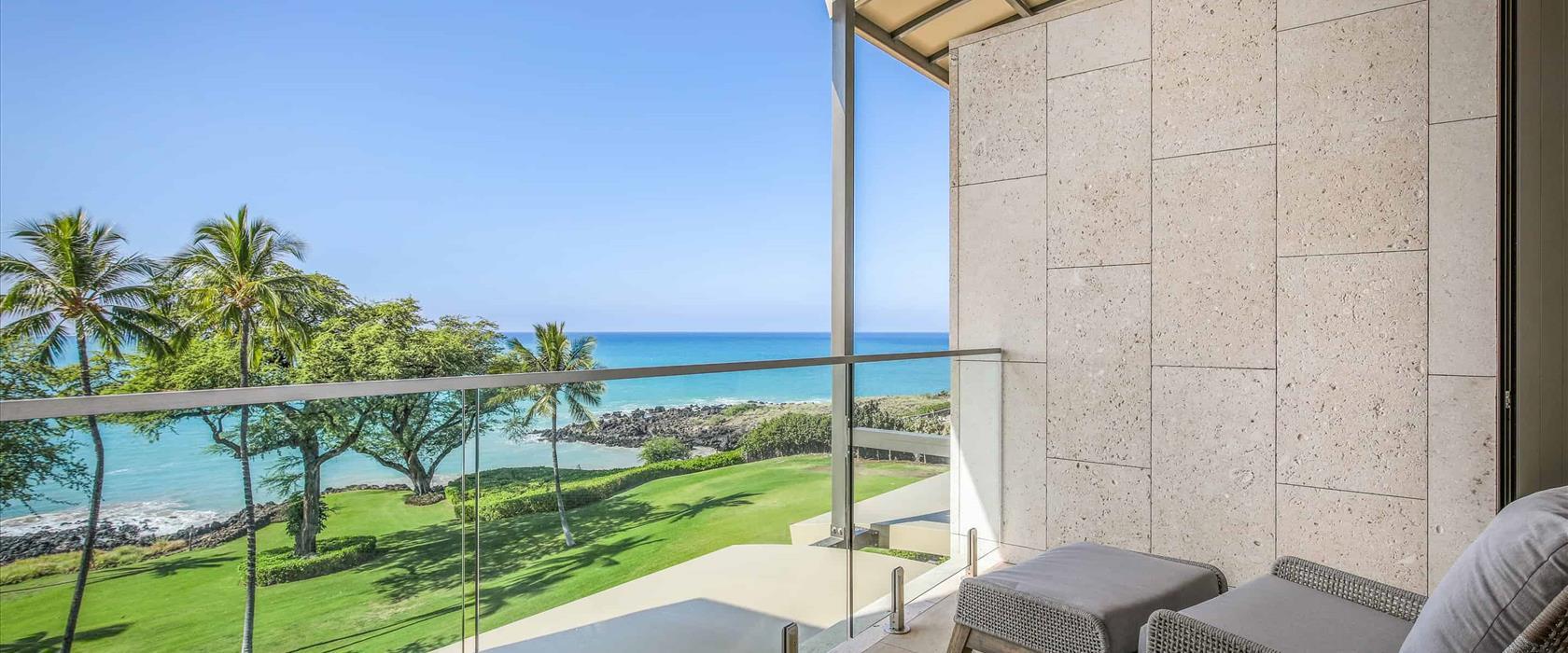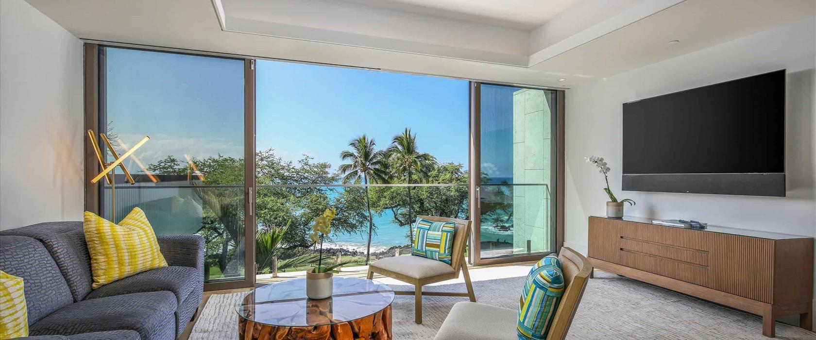 This magnificent, oceanfront, newly-constructed, island masterpiece offers floor-to-ceiling sliding window walls that create indoor/outdoor living space, an exquisite kitchen outfitted with professional-series Wolf and Sub-Zero appliances, including double ovens and wine storage, as well as a dining table for six+. Additional features include three guest suites, each with a sumptuous, attached bathroom (two have California king beds, the third has two twin beds that can be converted into a king), a bonus room/den containing a queen size day bed with a twin trundle bed beneath, a laundry room, air conditioning and furnished lanai. This residence is steps from the Hapuna Golf Course Clubhouse.