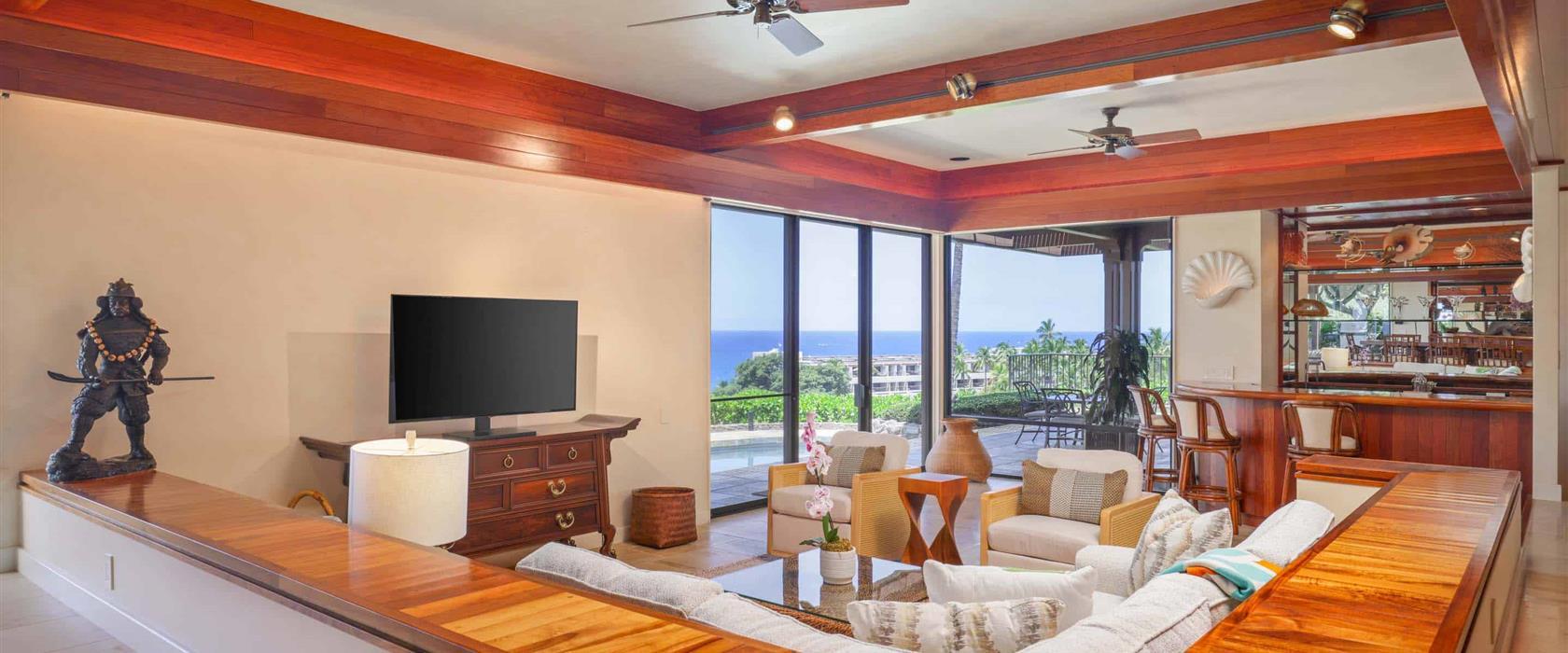 Just a short walk from the iconic Mauna Kea Beach Hotel, Mauna Kea Villas offers timeless Hawaiian luxury with breathtaking ocean views and seamless indoor-outdoor living. This elegant single-level residence features a sunken living room that opens through sliding glass doors to a private deck and pool. The primary suite includes a king bed and an ensuite bath, while the secondary suite offers flexibility with two twin beds that can convert into a king, also with its own ensuite. Additional amenities include private pool, air conditioning, a washer/dryer, and a private garage.