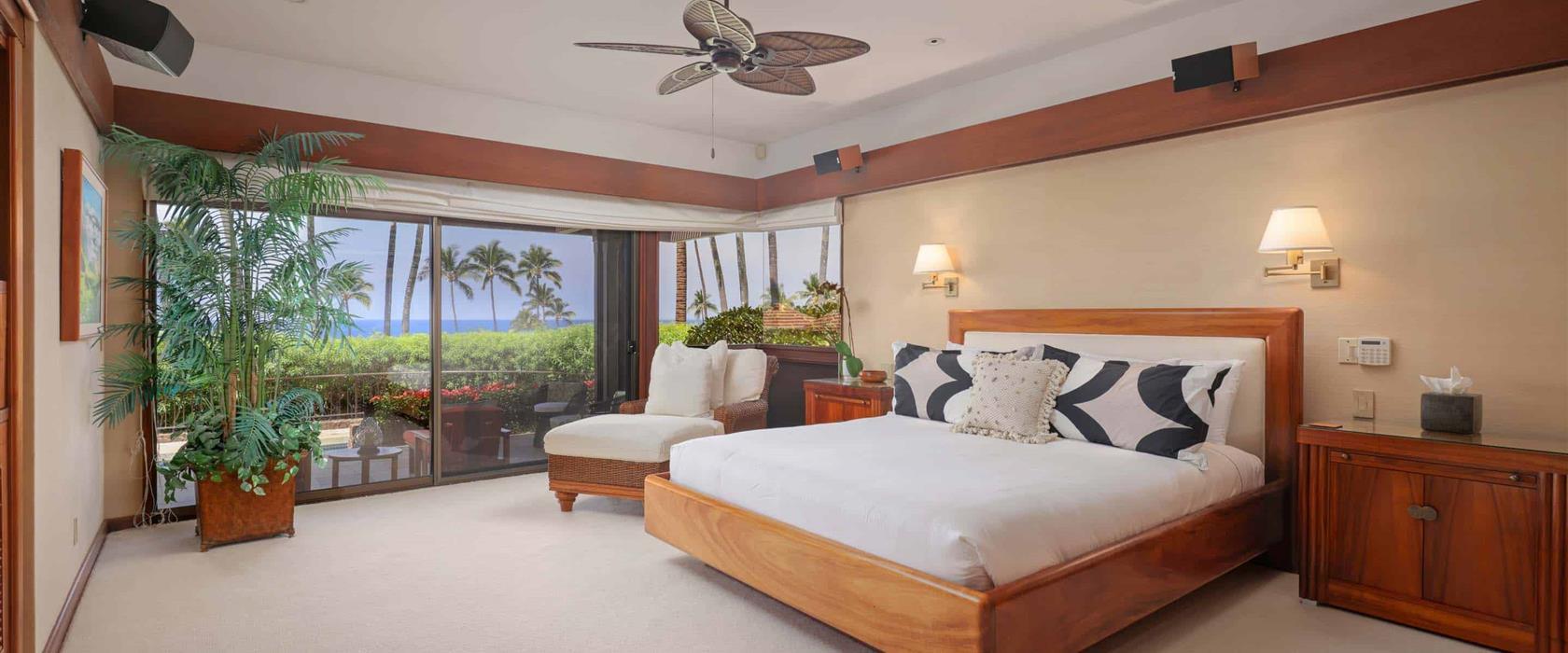 Within walking distance of Mauna Kea Resort, Mauna Kea Villas offers classic Hawaiian luxury with stunning ocean views and seamless indoor-outdoor living. This single-level residence features a sunken living room with a wet bar and sliding glass doors leading to a private deck with a pool and BBQ. The primary suite boasts a king bed and an ensuite bath. The secondary suite offers flexibility with two double beds and an ensuite bathroom. Additional amenities include air conditioning, a washer/dryer, and a private garage.